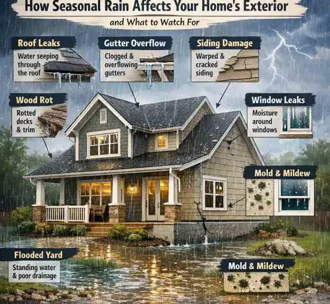 Understanding how rainfall impacts siding, patios, and walkways allows homeowners to take preventive maintenance steps before small issues turn into costly repairs or safety concerns.