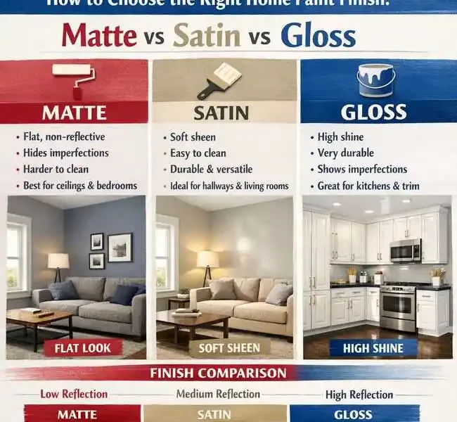 The right finish is less about what looks “premium” and more about what suits your room and routine. Matte keeps walls soft and forgiving; satin offers an easy-care balance for busy spaces; and gloss shines when you reserve it for doors, trims, and detail work. Choose with your lighting and lifestyle in mind, and your paint will look better for longer.