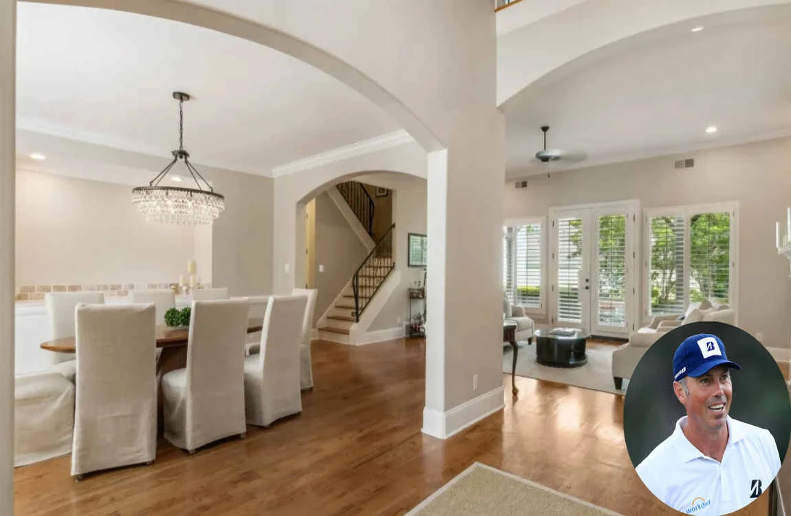 The living and dining areas of Matt Kuchar’s house are adorned with high-end finishes and thoughtful décor. With elegant lighting fixtures and plush furnishings, these spaces are designed for both relaxation and sophistication.