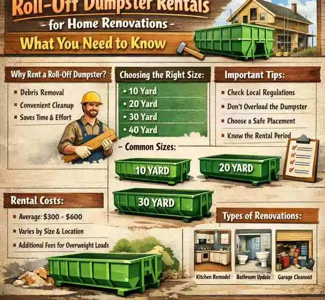 A roll-off dumpster rental offers a practical, efficient solution for handling renovation debris without constant trips to the landfill. By keeping waste contained and accessible, homeowners and contractors can focus on completing renovation projects safely and efficiently.