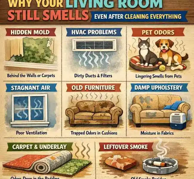 Identifying what is causing these smells is the first step to getting rid of them permanently. This article will look at which are the primary hidden causes of persistent odors in living rooms and what a person can do to fix them.